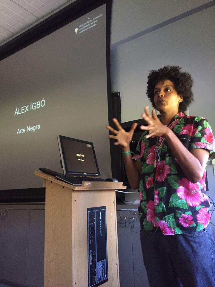 Na Pitzer College, Àlex deu uma palestra aberta à comunidade acadêmica intitulada “Arte Negra: Black Street Art in Bahia” e também foi convidado à aula de Introdução aos Estudos Culturais da América Latina pelo professor Salvador Velazco, no Claremont McKenna College. Lá, encontrou com membros do corpo docente e discente do Claremont Colleges Consortium, todos interessados no seu trabalho artístico no contexto brasileiro.