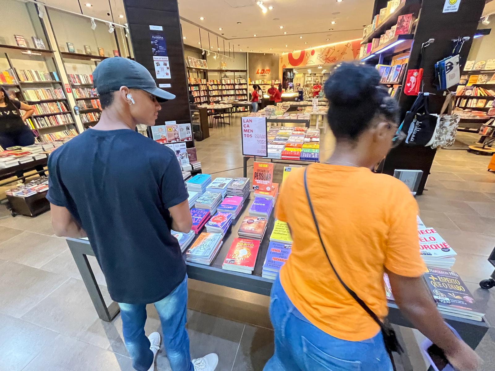 A estudante Catarina Araújo, que escolheu dois livros em sua tarde de exploração na livraria, falou da importância de visitar uma livraria e da variedade de opções de obras: “O que é uma vida bem-sucedida”, de Luc Ferry, e “Razão e sensibilidade”, de Jane Austen. E falou um pouco de um dos livros. Eu escolhi o livro de Luc Ferry, pois ele fala um pouco da nossa realidade de hoje em dia, onde as pessoas se baseiam na realidade do outro pra sobreviver daquilo. E hoje eu acredito que a gente não pode viver a realidade do próximo para seguir em frente, precisamos criar a nossa própria realidade”.